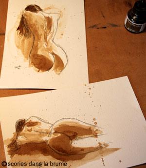 Ya de l'aquarelle, de l'acrylique, de l'encre de Chine, du crayon