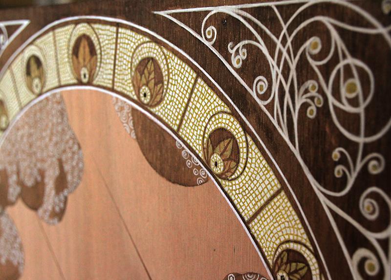 Rénovation et customisation artistique d'un paravent en bois (sapin/contreplaqué) (4 pans, h160 x L208cm)