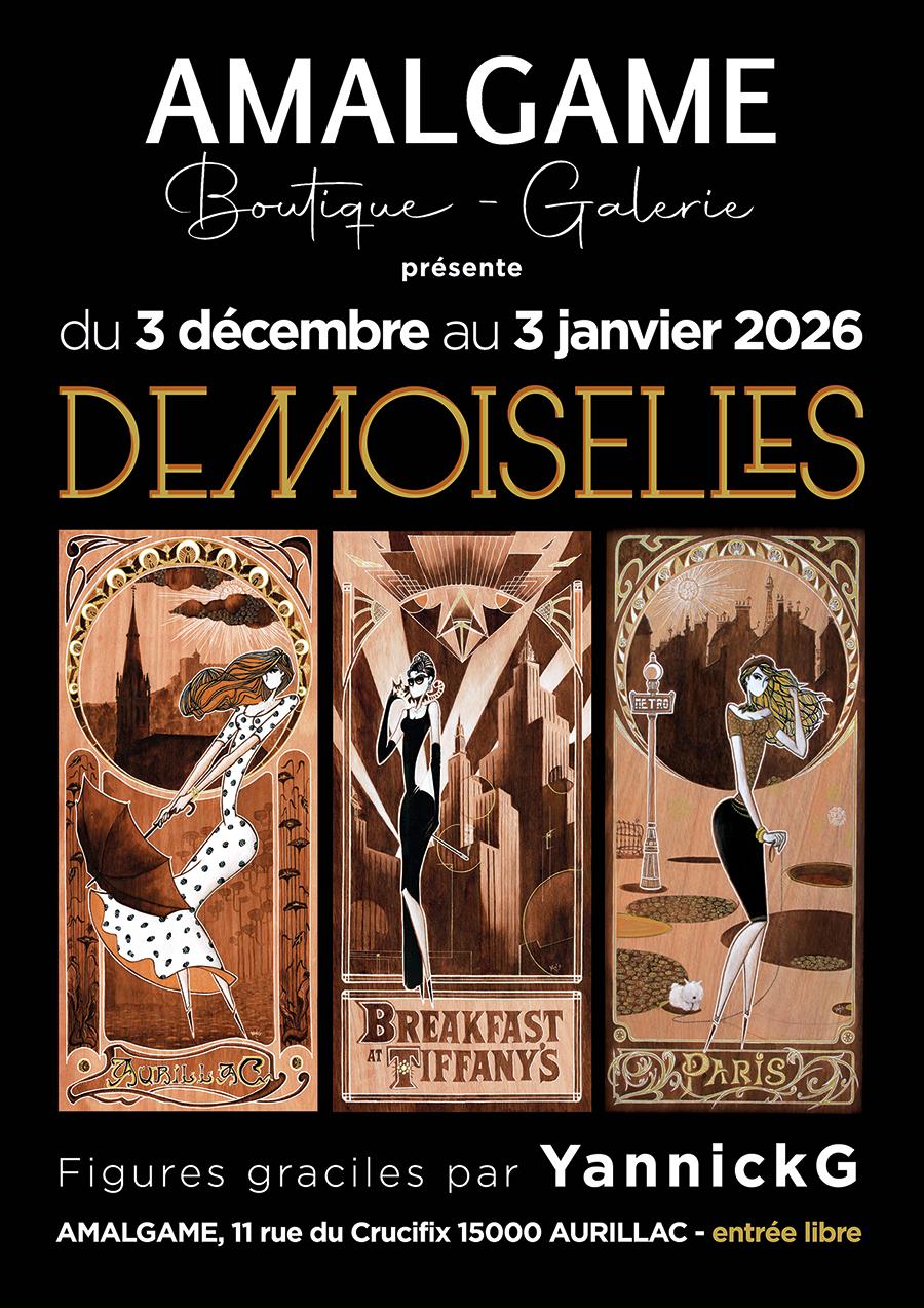 - du 3 décembre au 3 janvier 2026 expo "Demoiselles" Boutique-galerie Amalgame (Aurillac 15)