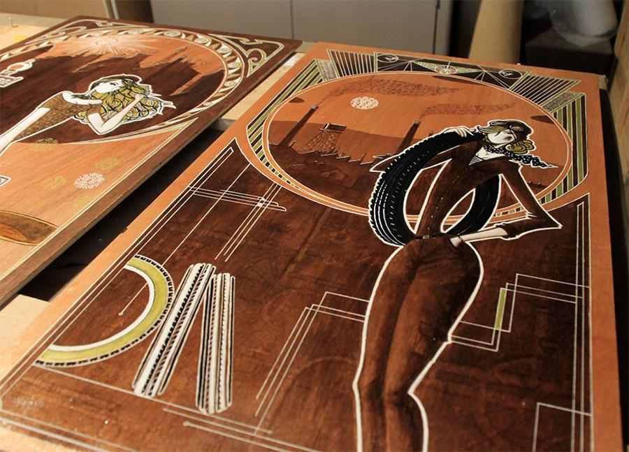 acrylique, brou de noix / bois contreplaqué (77x36cm)