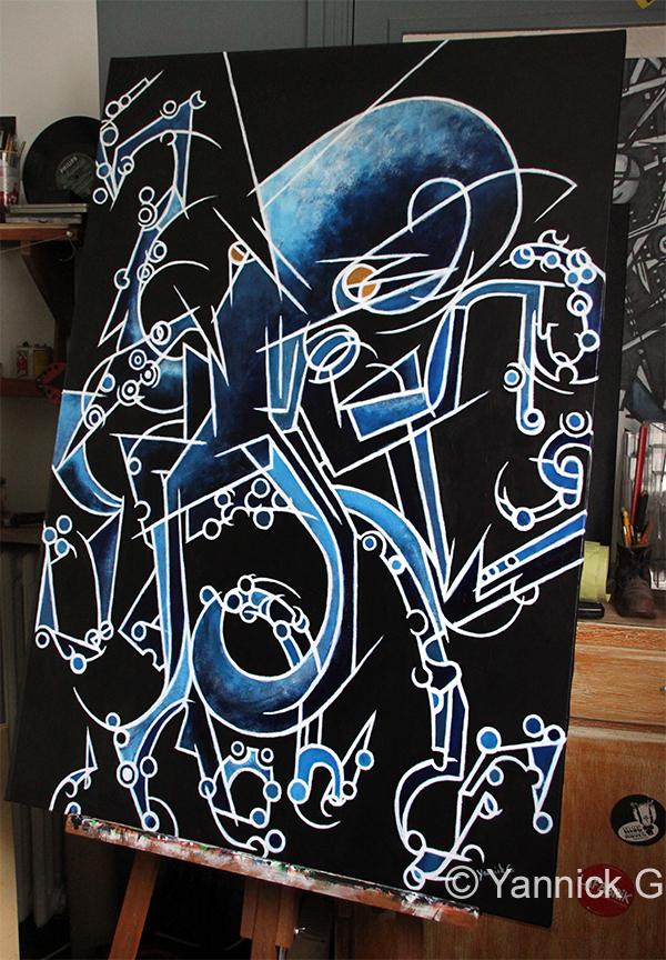 acrylique / papier macule marouflé sur toile 130x89 cm